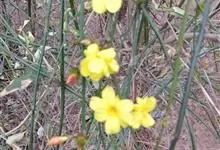 迎春花,木犀科素馨属的多年生木本植物,小枝细长直立或者呈拱形下垂;叶片呈卵形或椭圆形;花单生于叶腋处,苞片呈披针形或椭圆形,花冠为金黄色,花瓣通常为倒卵形或椭圆形;花期在6月。…全部>>