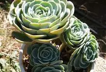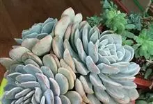 蓝石莲是景天科、拟石莲花属的多肉植物。茎部粗壮,成熟植株茎部木质化。叶片莲座型密集排列,株径不会很大,叶片相对较薄,常年绿色,表面布有白色粉末,中部凹陷,呈倒水滴状。叶尖较尖,叶缘光滑无褶皱,…全部>>