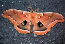 翅正面淡灰褐色,多褐色波纹状线,前后翅的外缘和亚缘线3条,中横线1条,前翅中室5条,从前室前缘到后翅cu2室有1列眼状纹,以两翅的m3室斑及cu1室斑为最显著,内半部橘红色,外半部黑色,…全部>>
