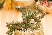 钱串景天景天科青锁龙属植物,多年生肉质草本,植株呈亚灌术状,植株小,节间短且几乎看不见节间,分枝平铺,在节上生根,对生的叶合生成圆盘状,叶顶端钝,花序为圆形聚伞圆锥花序,花白色。…全部>>