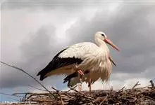 白鹳,是鹳形目鹳科鹳属鸟类。白鹳曾确定为3个亚种:指名亚种、中亚亚种和东方亚种。其体长约111厘米。嘴形直、粗厚而侧扁;体羽除飞羽黑色具铜绿色金属光泽外,余部均为白色;眼周裸区、脚、趾红色,嘴黑色。…全部>>