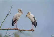 钳嘴鹳:鹳科动物。双翅展开时宽达81厘米。体型很大,体长81厘米。体羽白色至灰色,冬羽烟灰色。飞羽和尾羽黑色。下喙有凹陷,喙闭合时有明显缺口。…全部>>