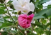 木芙蓉,锦葵科木槿属落叶灌木或小乔木。小枝上有细绒毛;叶片为卵状心形,托叶为披针形,常早落;花单生,花萼为钟形,花冠初为白色或淡红色,后逐渐变为深红色;果实为扁球形,有淡黄色的毛附着。花期8到10月。…全部>>