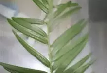 篦齿苏铁:树干圆柱形,高达3米。羽状叶长1.2-1.5米,叶轴横切面圆形或三角状圆形,柄两侧有疏刺,刺略向下弯,羽状裂片80-120对,条形或披针状条形,厚革质,坚硬,上面深绿色,下面绿色。…全部>>
