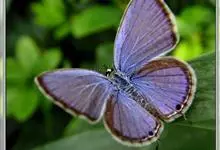 曲纹紫灰蝶是鳞翅目灰蝶科昆虫。成虫体长10-12毫米,翅展20-35毫米,翅面紫蓝色,前翅外缘黑色,后翅外缘有细的黑白边。翅反面灰褐色,缘毛褐色,两翅均具黑边。后翅有2条带内侧有新月纹白边,…全部>>