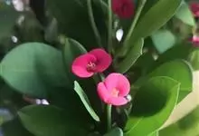 铁海棠为大戟科大戟属蔓生灌木植物;茎多分枝,具纵棱,呈旋转状;叶互生,通常集中于嫩枝上;每个花序基部边缘具微小的红色尖头;苞叶先端圆且具小尖头,无柄,上面鲜红色,下面淡红色;苞片丝状;子房光滑无毛,…全部>>