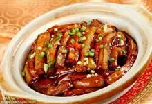 酱茄子是一道特色名菜,属于东北菜系,主要食材是茄子、酱,主要烹饪工艺是炒。成品呈黄褐色或者棕褐色,鲜嫩甘美,酱香浓郁,咸甜适口,略带酸味,肉质松软,…全部>>