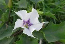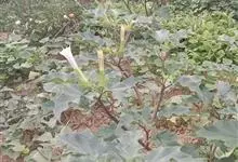 曼陀罗,茄科曼陀罗属一年生大型草本植物,全株光滑。有臭气;叶呈广卯形,边缘具不规则波状浅齿裂;花单生于枝杖间或叶腋,直立,有短梗;花萼是筒状裂片三角形,颜色为白色或淡紫色;果实为蒴果卵状,…全部>>