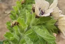 天仙子,是茄科天仙子属多年生草本植物,二年生草本,全体被黏性腺毛;根较粗壮,一年生的茎极短,自根茎发出莲座状叶丛,卵状披针形或长矩圆形,茎生叶卵形或三角状卵形,裂片多为三角形,顶端钝或锐尖,…全部>>