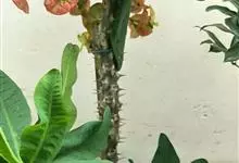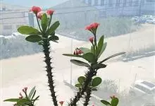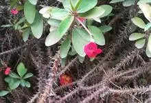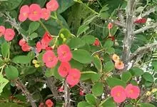 虎刺梅:别称铁海棠,是蔓生灌木植物。茎多分枝,长60-100厘米,直径5-10毫米,具纵棱,密生硬而尖的锥状刺,刺长1-1.5厘米,直径0.5-1.0 毫米,常呈3-5列排列于棱脊上,呈旋转。叶互生…全部>>