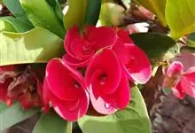 铁海棠为大戟科大戟属蔓生灌木植物;茎多分枝,具纵棱,呈旋转状;叶互生,通常集中于嫩枝上;每个花序基部边缘具微小的红色尖头;苞叶先端圆且具小尖头,无柄,上面鲜红色,下面淡红色;苞片丝状;子房光滑无毛,…全部>>