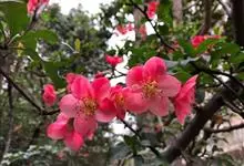 贴梗海棠 Nakai)是蔷薇科、木瓜海棠属植物。落叶灌木,高达2米,枝条直立开展,有刺。叶片卵形至椭圆形,稀长椭圆形,长3-9厘米,宽1.5-5厘米。花先叶开放,3-5朵簇生于二年生老枝上。…全部>>