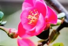 贴梗海棠Nakai)是蔷薇科、木瓜海棠属植物。落叶灌木,高达2米,枝条直立开展,有刺。叶片卵形至椭圆形,稀长椭圆形,长3-9厘米,宽1.5-5厘米。花先叶开放,3-5朵簇生于二年生老枝上。…全部>>