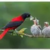 朱鹂:中等鸟类,体长23-28厘米。雄鸟绛紫红色,头、上胸及翼黑色。雌鸟上背及背部深灰色,尾覆羽及尾绛紫红色,腹部及下胸白而密布黑色纵纹。与鹊色鹂幼鸟的区别在上背灰色较深,下体白色较少且纵纹较粗。…全部>>