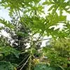 番木瓜,番木瓜科番木瓜属的常绿软木质小乔木,高达10米,具有乳汁;茎不分枝或有时于损伤处分枝;叶大且聚生于茎顶,近似盾形,叶柄中空;花单性或两性,有些品种雄株偶尔生两性花或雌花,…全部>>