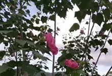 木芙蓉,锦葵科木槿属落叶灌木或小乔木。小枝上有细绒毛;叶片为卵状心形,托叶为披针形,常早落;花单生,花萼为钟形,花冠初为白色或淡红色,后逐渐变为深红色;果实为扁球形,有淡黄色的毛附着。花期8到10月。…全部>>