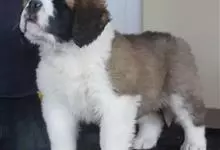 圣伯纳犬,别名巴里汉德,属于大型工作犬,肩高约65~90厘米,体重约50~90千克。圣伯纳犬身体强壮,被毛红褐色和白色相间,头圆而宽大。颈部强壮,胸宽深,背直。前肢长直,腕关节略前倾,后肢腿骨粗壮,…全部>>