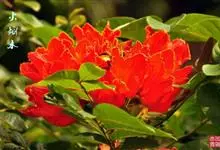 火焰木,又名苞萼木、喷泉树,为紫葳科常绿大乔木,株高10—20米,叶为奇数羽状复叶,对生,较大,斜椭圆形,全缘,纸质,叶面深绿色。 全部>>