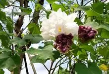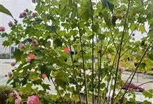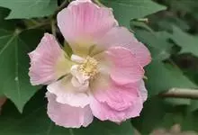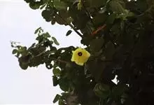 海滨木槿是锦葵科木槿属植物,落叶小乔木,株高3-5米,胸径20厘米,扁球形树冠,枝叶繁盛。厚纸质单叶互生,扁圆形、倒卵形或宽倒卵形,先端钝近平,具短突尖,基部圆形或浅心形,叶缘中上部具细圆齿,…全部>>