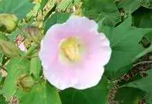 海滨木槿是锦葵科木槿属植物,落叶小乔木,株高3-5米,胸径20厘米,扁球形树冠,枝叶繁盛。厚纸质单叶互生,扁圆形、倒卵形或宽倒卵形,先端钝近平,具短突尖,基部圆形或浅心形,叶缘中上部具细圆齿,…全部>>