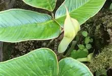 一把伞南星 Schott):是天南星科、天南星属的植物。块茎扁球形,直径可达6厘米,表皮黄色,有时淡红紫色。鳞叶绿白色、粉红色、有紫褐色斑纹。叶1,极稀2,叶柄长40-80厘米。花序柄比叶柄短,直立,…全部>>