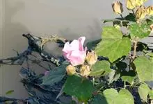 木芙蓉,锦葵科木槿属落叶灌木或小乔木。小枝上有细绒毛;叶片为卵状心形,托叶为披针形,常早落;花单生,花萼为钟形,花冠初为白色或淡红色,后逐渐变为深红色;果实为扁球形,有淡黄色的毛附着。花期8到10月。…全部>>