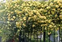 黄木香花 Rehd.)是蔷薇科、蔷薇属植物,为木香花的变型品种,攀缘小灌木,高可达6米。小叶3-5枚,稀7枚,小叶片椭圆形或长圆状披针形,先端急尖或稍钝,基部近圆形或宽楔形,边缘有紧贴细锯齿。花小型,…全部>>