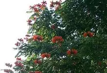 火焰木,又名苞萼木、喷泉树,为紫葳科常绿大乔木,株高10—20米,叶为奇数羽状复叶,对生,较大,斜椭圆形,全缘,纸质,叶面深绿色。 全部>>
