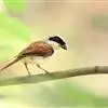 朱鹂:中等鸟类,体长23-28厘米。雄鸟绛紫红色,头、上胸及翼黑色。雌鸟上背及背部深灰色,尾覆羽及尾绛紫红色,腹部及下胸白而密布黑色纵纹。与鹊色鹂幼鸟的区别在上背灰色较深,下体白色较少且纵纹较粗。…全部>>