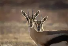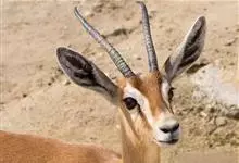 阿拉伯沙瞪羚:是偶蹄目、牛科、瞪羚属的食草动物。头尾长97厘米,身高约55-60厘米。雄性体重约为22千克,雌性性体重为18千克。雌雄都有犄角,雄性长达27厘米,雌性15厘米。体型较小。腿细长,…全部>>