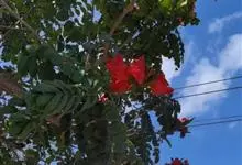 火焰木,又名苞萼木、喷泉树,为紫葳科常绿大乔木,株高10—20米,叶为奇数羽状复叶,对生,较大,斜椭圆形,全缘,纸质,叶面深绿色。 全部>>