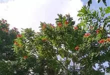 火焰木,又名苞萼木、喷泉树,为紫葳科常绿大乔木,株高10—20米,叶为奇数羽状复叶,对生,较大,斜椭圆形,全缘,纸质,叶面深绿色。 全部>>