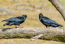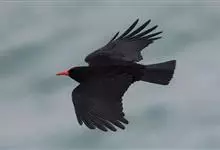红嘴山鸦,是脊索动物门鸟纲雀形目鸦科鸟类。红嘴山鸦的成鸟通体羽毛纯黑色具有蓝色金属光泽,翼和尾泛有蓝绿色金属光泽;虹膜暗褐色,喙较为尖细,并且呈镰状下弯,喙和脚朱红色。…全部>>