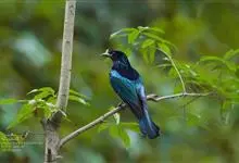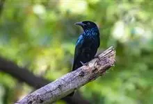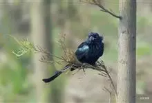 发冠卷尾是中型鸟类,体长28-35厘米。通体绒黑色缀蓝绿色金属光泽,额部具发丝状羽冠,外侧尾羽末端向上卷曲。栖息于海拔1500米以下的低山丘陵和山脚沟谷地带,多在常绿阔叶林、次生林或人工松林中活动。…全部>>