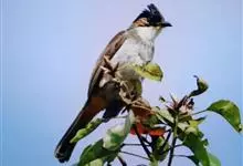 黄腹角雉:是鸟纲、雉科中国特产的一种鸟类。体长约50-65厘米。雄鸟上体栗褐色,满布具黑缘的淡黄色圆斑。头顶黑色,具黑色与栗红色羽冠。飞羽黑褐带棕黄斑。下体几纯棕黄,因腹部羽毛呈皮黄色,…全部>>