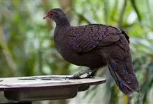 黑长尾雉大型鸡类,体长53~88厘米。雄较雌大。雄鸟通体紫蓝色,脸鲜红色,翅上有一条显著的白色翅斑,尾甚长,黑色,具显著的白色横斑,脚绿褐色。雌鸟通体橄榄褐色,脸红色,背和翅满布棕褐色斑纹和灰白色羽…全部>>