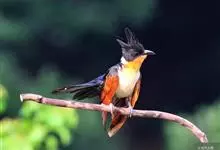 红翅凤头鹃:体长约38厘米,顶冠及凤头黑色,具显眼的直立凤头,背及尾黑色而带蓝色光泽,翅栗红色,喉及胸橙褐色,颈圈白色,腹部近白。虹膜淡红褐色。嘴黑色,下嘴基部近淡土黄色,嘴角肉红色,脚铅褐色。…全部>>