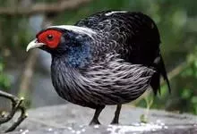 黑鹇是鸡形目雉科目鹇属鸟类,又称鸬雉、黑鸡。体型中等。雄鸟上体黑褐色,背羽具黑紫色金属光泽;头顶具黑羽冠;脸部裸皮呈红色,散生稀疏黑色纤羽;尾长而侧扁,中央两对尾羽红褐色,…全部>>