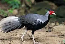 黑鹇是鸡形目雉科目鹇属鸟类,又称鸬雉、黑鸡。体型中等。雄鸟上体黑褐色,背羽具黑紫色金属光泽;头顶具黑羽冠;脸部裸皮呈红色,散生稀疏黑色纤羽;尾长而侧扁,中央两对尾羽红褐色,…全部>>