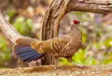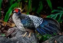 红腹角雉属于鸡形目雉科,雄鸟体羽及两翅主要为深栗红色,满布具黑缘的灰色眼状斑,下体灰斑大而色浅。雌鸟上体灰褐色,下体淡黄色,杂以黑、棕、白斑。全部>>