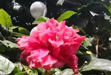 重瓣朱槿是锦葵科、木槿属常绿灌木植物;小枝疏被星状柔毛单叶互生,卵形或卵状披针形,基部圆形;叶柄长;托叶早落;花重瓣,较朱槿为大;花萼小,钟形,基部具有苞片多枚;花瓣多枚排列成彩球状,…全部>>