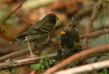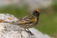 金额丝雀:为雀科丝雀属的鸟类。体重10-14克,体长109-131毫米。是一种体型较小的褐色斑驳的雀鸟。头近黑,额至顶冠有鲜红色块斑。雄雌同色,体羽在繁殖期更为亮丽。幼鸟似成鸟但头色较淡,…全部>>