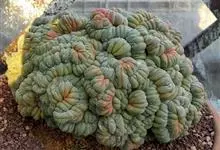 英冠玉是仙人掌科南国玉属的多年生肉质植物。茎幼时球形,后随年龄增长渐变为圆筒形,高可达5米,易群生,蓝绿色,茎顶密生绒毛;刺座密集,毛状黄白色,中刺针状褐色;花大,花冠漏斗状,…全部>>