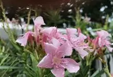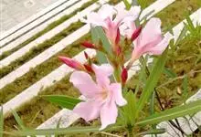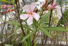 夹竹桃,又名红花夹竹桃、欧洲夹竹桃,是夹竹桃科夹竹桃属的一种常绿直立大灌木,枝条灰绿色,含水液。叶披针形,3叶轮生。聚伞花序顶生,花冠粉红至深红色,花冠漏斗状,有特殊香味。蓇葖果,圆柱形。种子长圆形,…全部>>