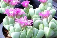 舌叶花 N.E.Br.),番杏科舌叶花属多浆植物。舌叶花的地上茎短粗柔软,不能直立,能萌生很短的分枝;叶片厚胖多浆,在短茎上呈两列状对生,排列紧密;叶片长舌状,基部抱茎,淡翠绿色,…全部>>