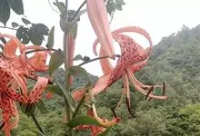卷丹是百合科百合属植物。鳞茎近宽球形,鳞片宽卵形,呈白色;茎带紫色条纹,具白色绵毛;叶散生,矩圆状披针形或披针形,两面近无毛,先端有白毛,边缘有乳头状突起,上部叶腋有珠芽;花下垂,花被片披针形,…全部>>