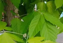 糖槭,无患子科槭树属乔木。树冠圆形,树皮黄褐色或灰褐色;当年生枝绿色,老枝黄褐色;奇数羽状复叶,叶缘具疏锯齿,绿色;雌雄异株,雌花为总状花序,花小下垂;翅果扁平,两果开展成锐角或近直角。花期4-5月,…全部>>
