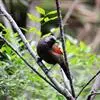 银耳相思鸟小型鸟类,体长14~18厘米。头顶黑色,耳羽银灰色,前额橙黄色;外侧飞羽橙黄色,基部朱红色,极为鲜艳、醒目。尾圆形,尾上、尾下覆羽朱红色,尾暗灰褐色,外侧尾羽橙黄色,其余上体橄榄绿或橄榄黄色。…全部>>