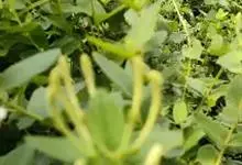 山银花在华南地区野外山林生长。木质藤本,长2~5m。树皮黄褐色渐次变为白色,嫩时有短柔毛。叶对生,卵圆形至椭圆形,长4~8cm,宽3.5~5cm,上面绿色,主脉上有短疏毛,下面带灰白色,密生白色短柔…全部>>