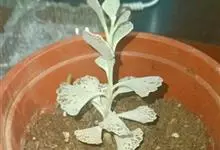 银波锦 DC.)是景天科、银波锦属植物。多浆肉质灌木。茎肉质,直立,株高30-60厘米,小枝白色。对生叶,叶片倒卵形,边缘呈波状,叶面密被银灰色粉,叶长8-12厘米,宽6厘米左右。聚伞状圆锥花序,…全部>>